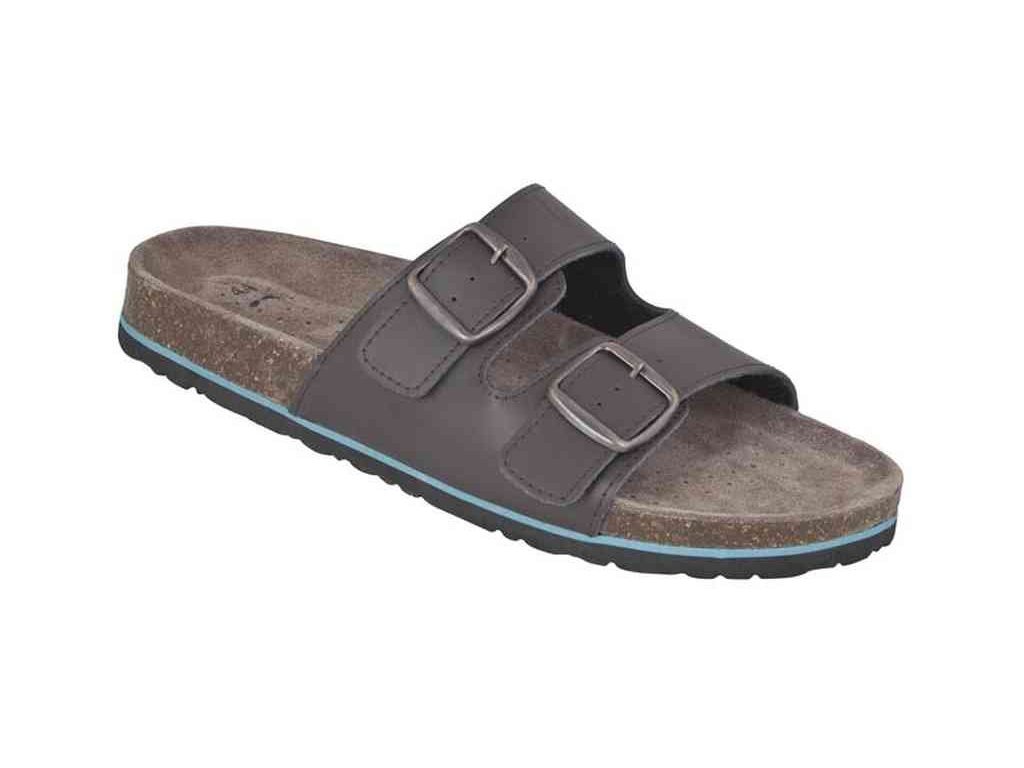 • korkové nazúvaky so zvrškom z materiálu action leather (štiepaná koža s povrchovou polyuretánovou úpravou)
