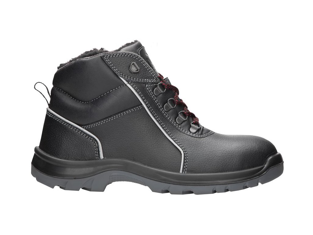 Kotníková obuv pracovná kožená zimná členková obuv reflexná aplikácia na zvršku vodeodolná úprava zvršku PU2D podošva, odolná olejom, pohonným hmotám a kontaktnému teplu do 110°C <>>> podrážka: PU2D norma: EN 20347 veľkosti: 36 - 48 váha: 552 g (platí pre polpár obuvi vo veľkosti 42) farba: čierna