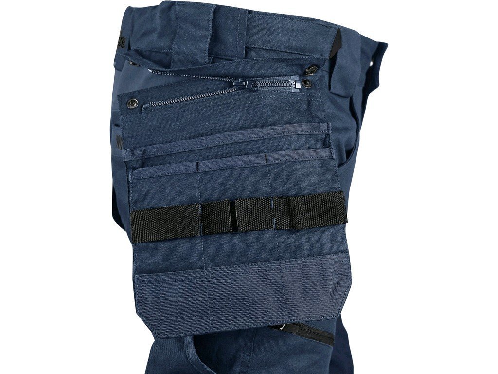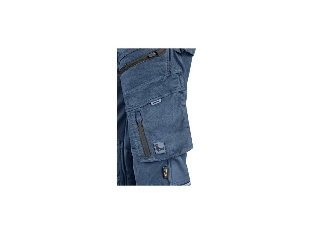 Pánske pracovné nohavice moderného strihu slim-fit. Kombinácia kvalitného zmesového materiálu s elastanom a 4-way stretch materiálu v exponovaných miestach umožňuje voľný a pohodlný pohyb. Vybavenie nohavíc: flexibilný pás s možnosťou upravenia veľkosti a pútkami na opasok, na vnútornej strane pásu protišmyková potlač, 2 predné vrecká, 2 odnímateľné vrecká na náradie vystužené materiálom CORDURA®, stehenné zipsové vrecká s možnosťou ventilácie, bočné vrecko so zipsovým vreckom, 2 zadné vrecká meter s ďalšími priehradkami, ergonomicky tvarované kolená zosilnené materiálom CORDURA® s možnosťou vloženia kolenných výstuh bočným vkladaním a ventiláciou, vrecko na ID kartu, spodná časť nohavíc vystužená materiálom CORDURA®, reflexné doplnky. Nohavice umožňujú predĺženie strihu na vyššiu postavu uvoľnením švu na nohaviciach. Odporúčané použitie: strojárstvo, stavebníctvo, ľahký priemysel, automobilový priemysel, logistika, skladovanie, špedícia, autoservisy, údržba, montáže, poľnohospodárstvo, záhrada, hobby a voľný čas.
