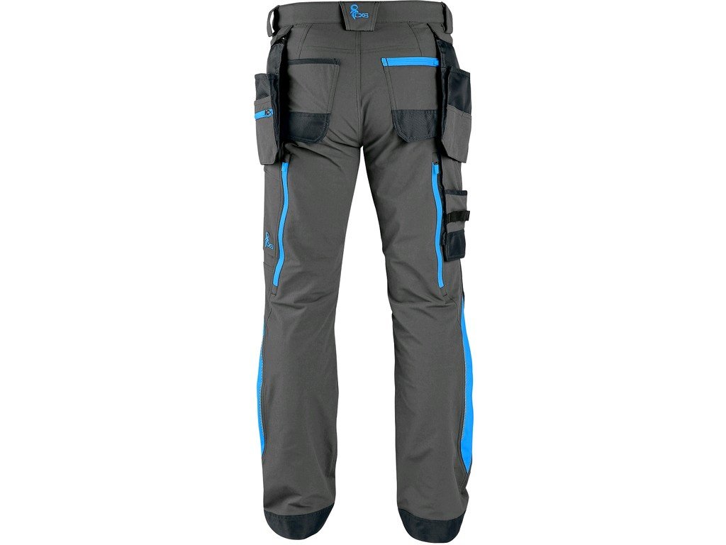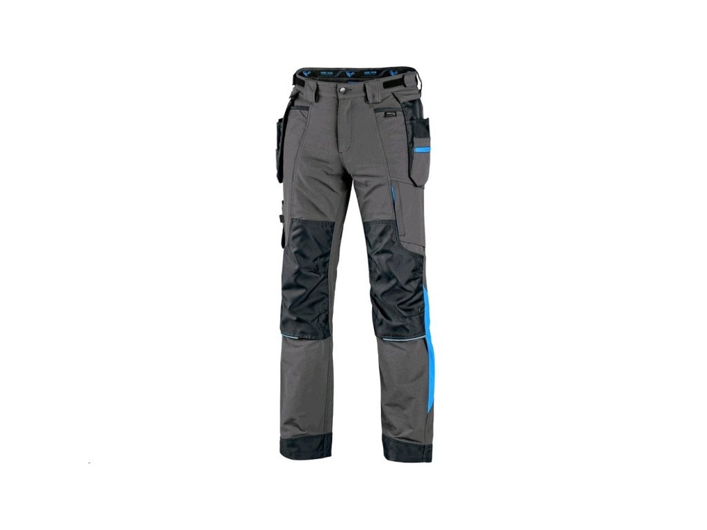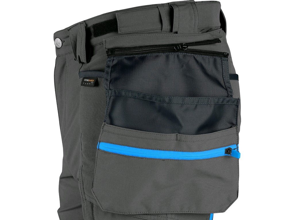 Pánske montérkové nohavice s užším moderným strihom nohavíc s kontrastnými farebnými a reflexnými doplnkami. Konštrukcia 4-way stretch umožňuje rozťahovanie materiálu vo všetkých štyroch smeroch a tým aj ľahký a voľný pohyb. Vysoké percento nylonu zaručuje schopnosť rýchleho schnutia. Vybavenie nohavíc: flexibilný pás s možnosťou upravenia veľkosti a pútkami na opasok, 2 predné vrecká, 2 odnímateľné vrecká na náradie vystužené materiálom CORDURA, vrecko na zips na stehne, multifunkčné bočné vrecko, 2 zadné vrecká v spodnej časti vystužené materiálom CORDURA, zipsová ventil stuh, spodná časť nohavíc vystužená materiálom CORDURA.