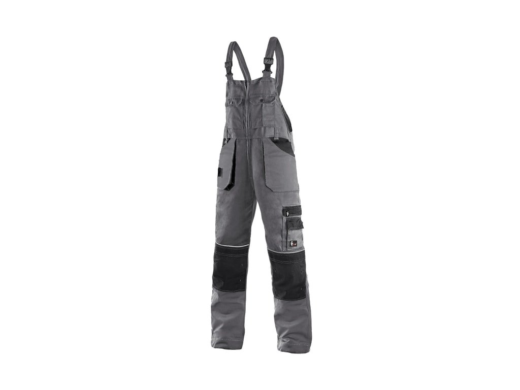 Pánske nohavice s náprsenkou, zdvojené kolená s možnosťou vloženia kolenných výstuh, klinové predné vrecká a našité vrecká na zips s pútkami na náradie, bočné multifunkčné vrecká, náprsenka s vreckami a rozopínaním uprostred, reflexné doplnky.