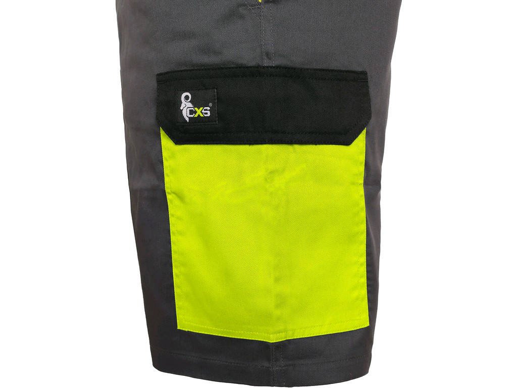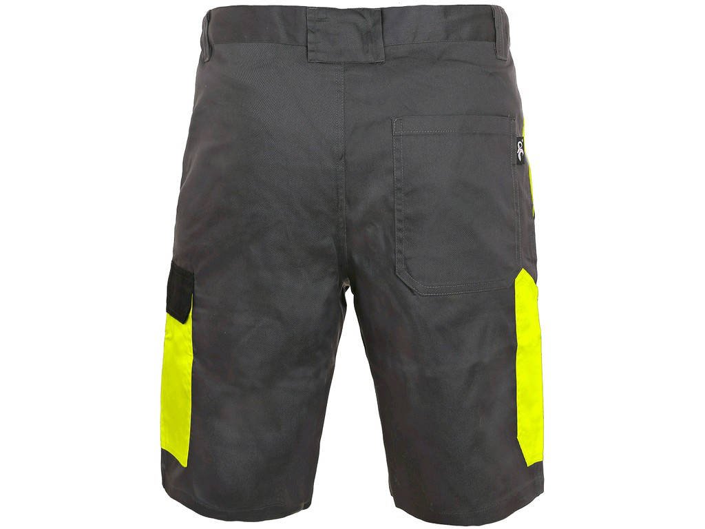 Pánske montérkové kraťasy, pás s pútkami na opasok, predné klinové vrecká, bočné vrecko s chlopňou, vrecko na skladací/ zvinovací meter, zadné jednoduché vrecko na pravej strane. Odporúčané použitie: letný pracovný odev, stavebníctvo, strojárstvo, ľahký priemysel, automobilový priemysel, logistika, skladová manipulácia, špedícia, autoservisy, údržba, montáže, poľnohospodárstvo, učilište, čerpacie stanice, záhrada, hobby.