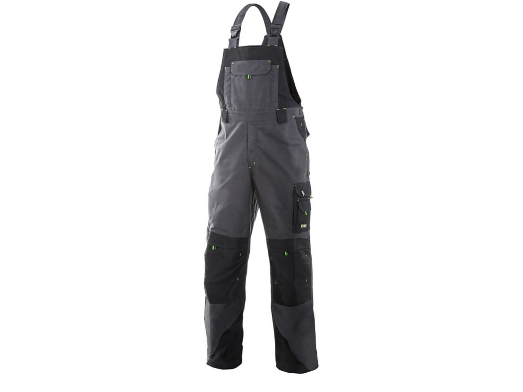 Pánske nohavice s náprsenkou, zosilnené kolená s možnosťou vloženia kolenných výstuh, pevný pás s pútkami na opasok, predné klinové vrecká, zadné vrecká s klopami, bočné multifunkčné vrecká, náprsenka s veľkým vreckom a vreckami na ceruzky.