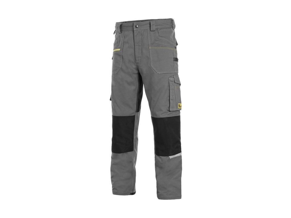 Pánske montérkové nohavice, strečová tkanina umožňujúca voľný pohyb, pás s pútkami na opasok, špeciálny zasúvací patent v páse proti samovoľnému rozopnutiu, predné vrecká ena 600D polyesterom s možnosťou vloženia kolenných výstuh, dve zadné kvapky - jedna s chlopňou, zadný spodný lem nohavíc vystužený 600D polyesterom, reflexné doplnky. Odporúčané použitie: Gramáž
