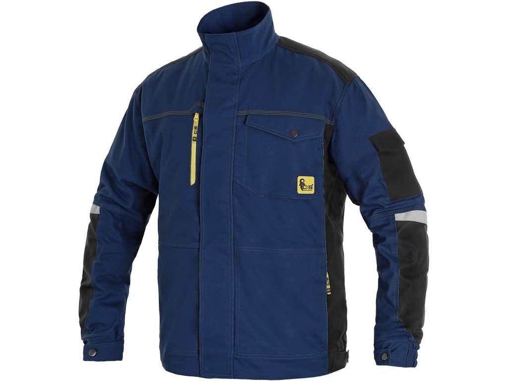 Pánska montérková blúza, strečová tkanina umožňujúca voľný pohyb, ramená vystužené 600D polyesterom, rukávy s nastaviteľnou manžetou, vrecko s klopou na ľavom rukáve, kryté zapínanie na zips a cvoky, náprsné vrecká na cvok, zips, bočné .