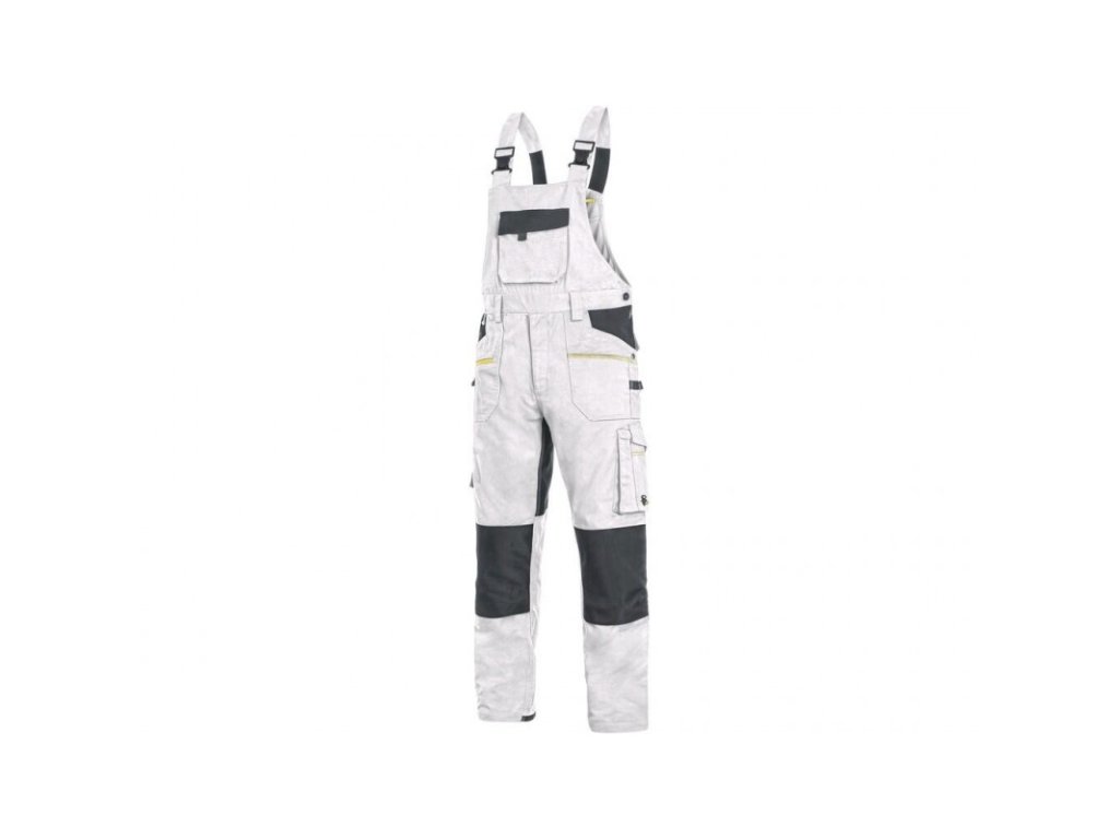 Pánske montérkové nohavice s náprsenkou, strečová tkanina umožňujúca voľný pohyb, náprsné vrecko s chlopňou, pás s pútkami na opasok, predné vrecká s vreckom na zips, dve zložky. vrecká - jedna s chlopňou, zadný spodný lem nohavíc vystužený 600D polyesterom, traky s gumou vzadu, reflexné doplnky. Odporúčané použitie: strojárstvo, stavebníctvo, ľahký priemysel, automobilový priemysel, logistika, skladová manipulácia, špedícia, autoservisy, údržba, montáže, poľnohospodárstvo, záhrada, hobby.
