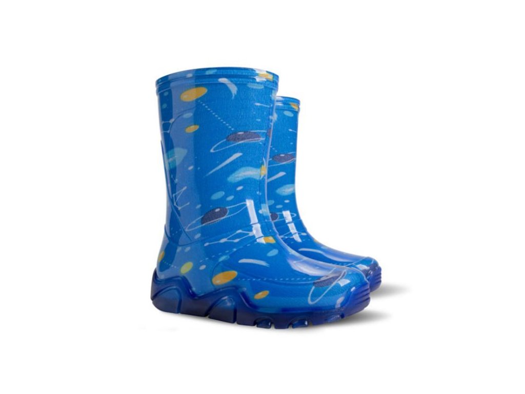 Chlapčenské farebné čižmy demar STORMER PRINT sú ideálne pre daždivé letné počasie. Farba holiniek modrá štýlovo doplnená farebnými planétkami. Majú hrubšiu protišmykovú podrážku zaisťujúcu bezpečnosť chôdze. Holinka je veľmi pohodlná a ľahká. Materiál je vysoko kvalitné a odolné PVC podšité príjemnou textíliou. Na päte obuvi je bezpečnostný reflexný pásik pre dobrú viditeľnosť dieťaťa v tme.