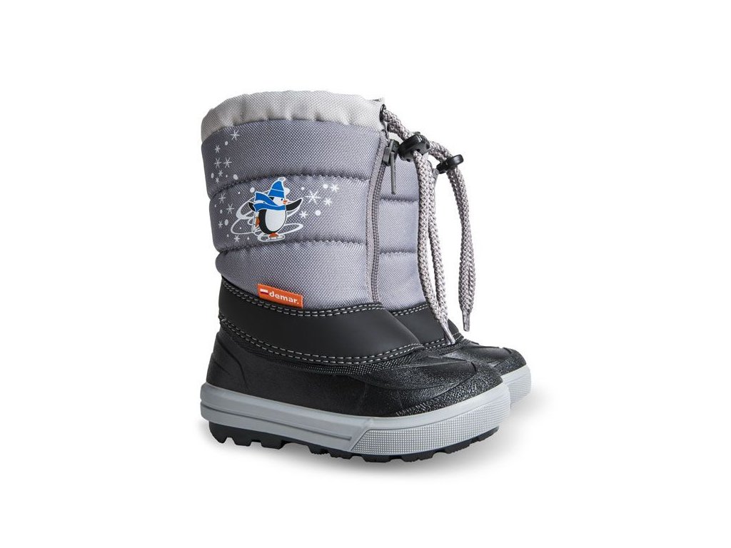 Detská zimná obuv demar KENNY zateplená pravou ovčou vlnou je vhodná do snehu a mrazu. Zimná obuv je veľmi teplá a ľahká. Nepremokavá spodná časť je vyrobená z termokaučuku, vrchný diel z odolnej textílie. Pre pohodlné a ľahké obúvanie obuvi je na prednej strane umiestnený zips. Možnosť zatiahnutia zvršku proti padaniu snehu na šnúrku. www.demar.sk