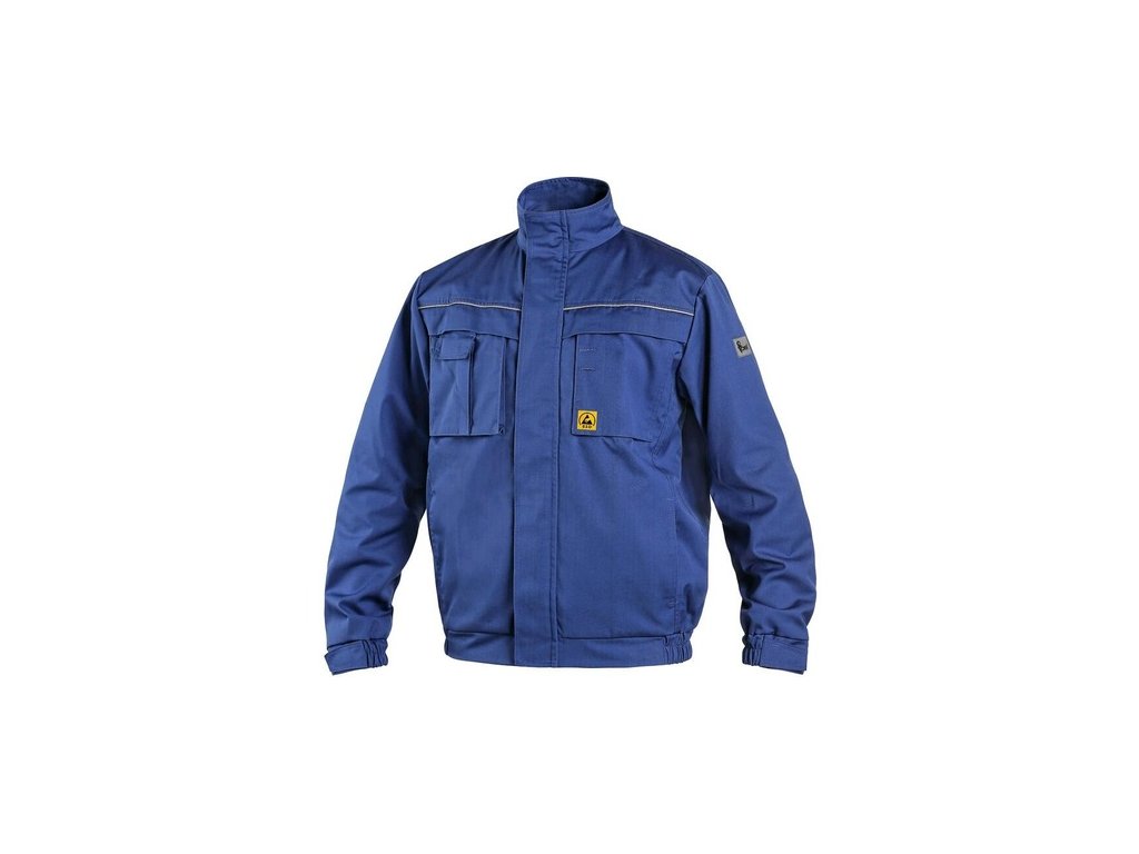 Uhlíkové vlákno tkané cez látku poskytuje vynikajúcu ochranu proti statickej elektrine. Kryté zapínanie na zips, multifunkčné náprsné vrecká, rukávy s nastaviteľnou manžetou, pás na bokoch do gumy, reflexné doplnky.