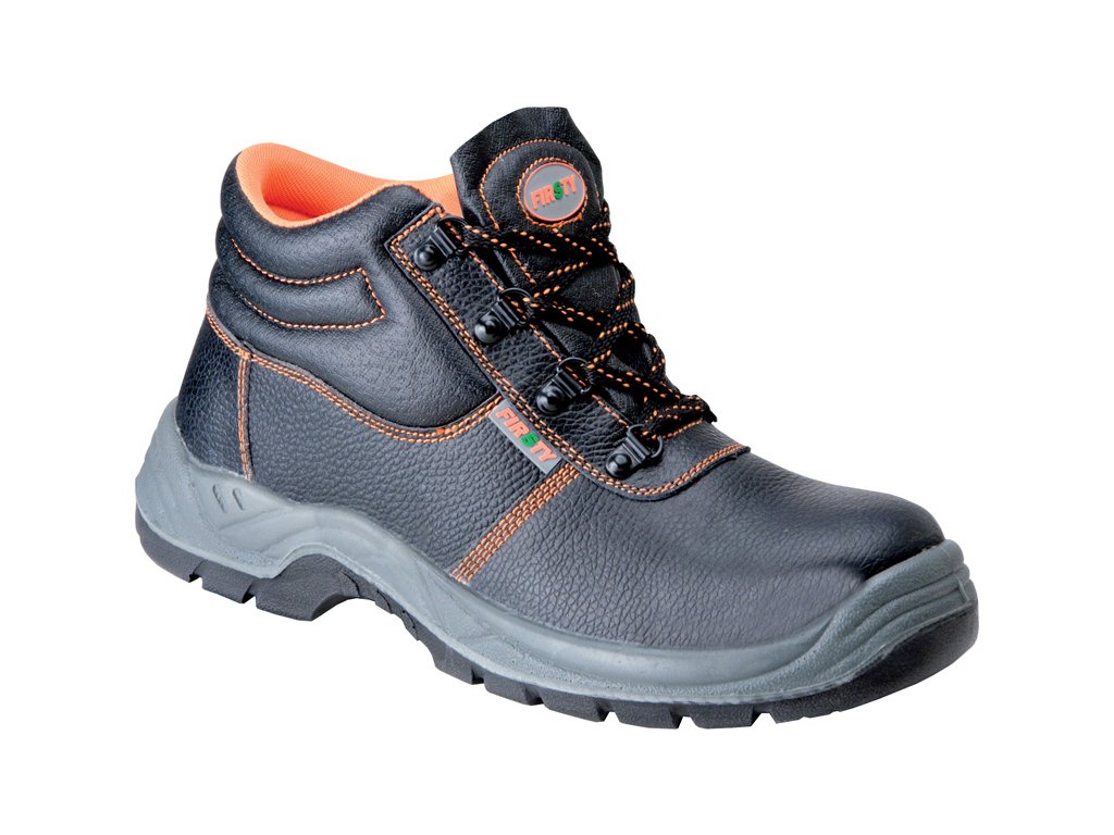 kotníková obuv s oceľovou špicou a planžetou mäkčená bandáž pre pohodlné nosenie PU2D podošva je odolná olejom, pohonným hmotám a kontaktnému teplu do 110°C, antistatická materiál: hovädzia useň veľkosti: 36 - 48 farba: čierno-oranžová