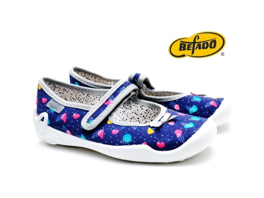 › Pre deti › detské papuče › holky › BEFADO 114Y429 dievčenské balerínky - modré lístky