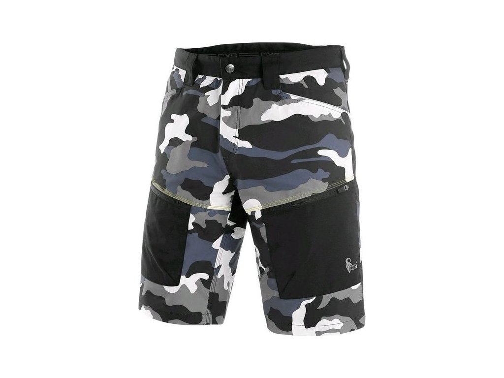 Pánské lehké vycházkové kraťasy z kombinovaných materiálů. Pas s gumou v bocích, poutka na opasek, 4 přední kapsy, zadní kapsa na zip, reflexní logo na nohavici, vnitřní protiskluzová gumová páska v pase.