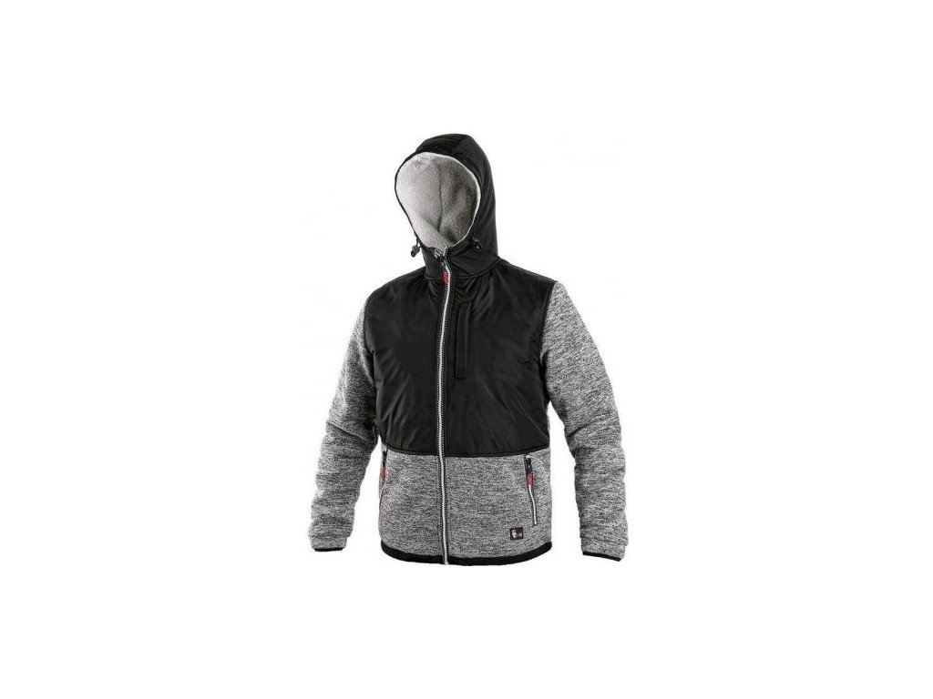 Pánska bunda z pleteniny, teplou podšívkou, kombinácia materiálov, kapucňa na pevno, sťahovanie v dolnom okraji, rukávy zakončené gumičkou, reflexné doplnky, náprsné vrecko na krytý zips, 2 spodné vrecká na zips. Vrchný materiál: 100% polyester, Podšívka: 100% polyester. Gramáž 280 gsm. Farba šedo - čierna. Veľkosť: S-3XL.