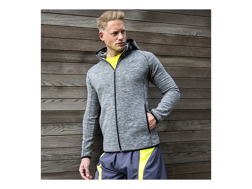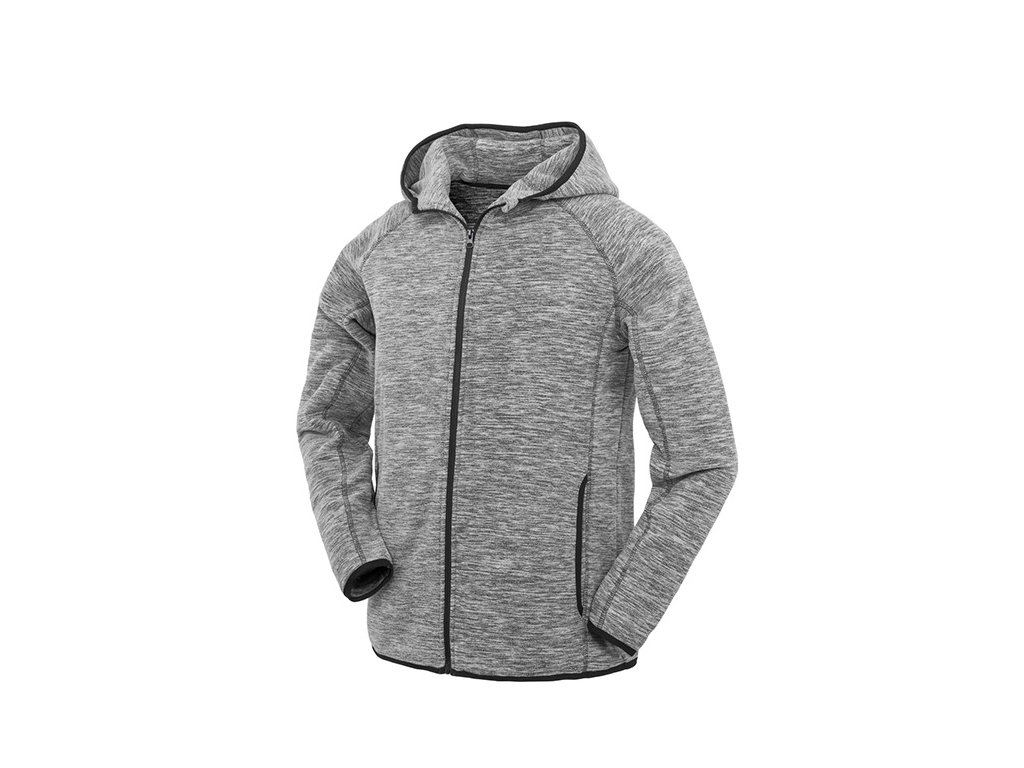 opis: elastický materiál, rýchloschnúci. Kapucňa zo zdvojeného materiálu, mäkký náplet na leme kapucne, spodných manžetách a spodnom leme.