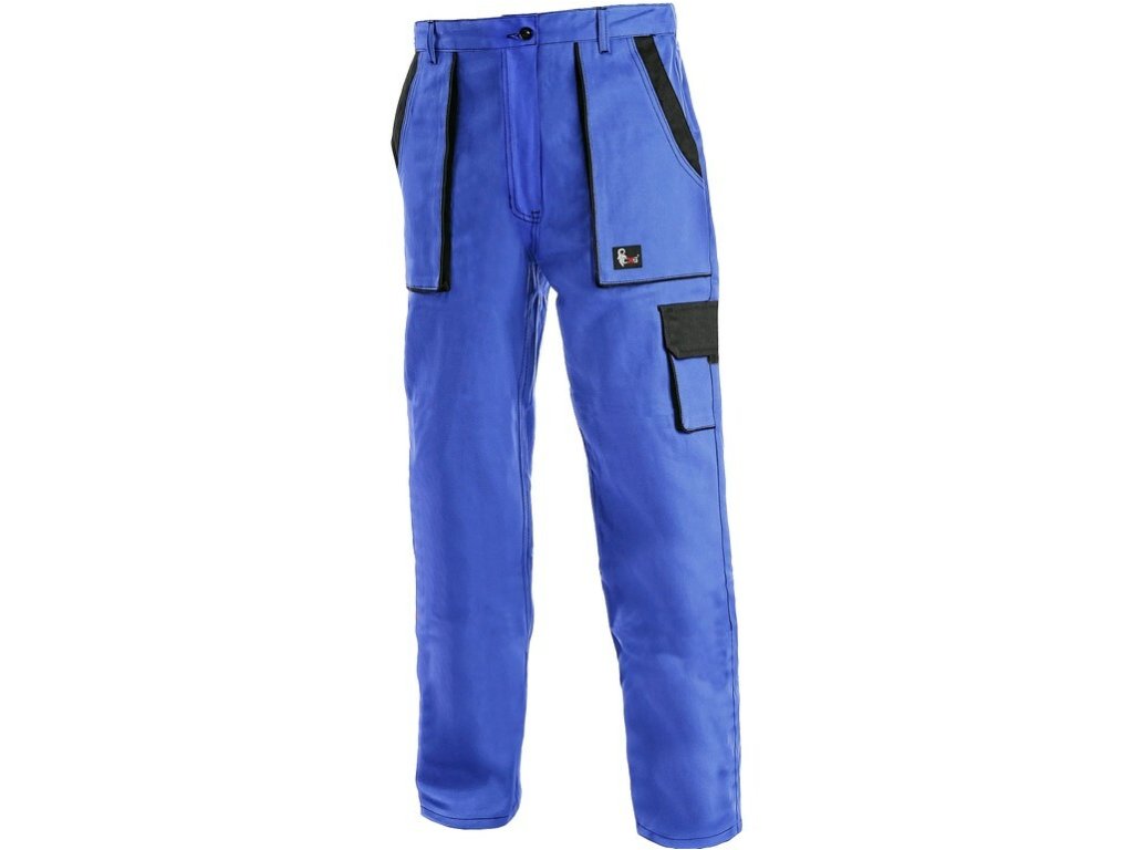 Dámske nohavice do pása, zdvojené kolená, pevný pás vzadu do gumy s pútkami na opasok, predné vakové vrecká, bočné vrecká na meter a na mobil.