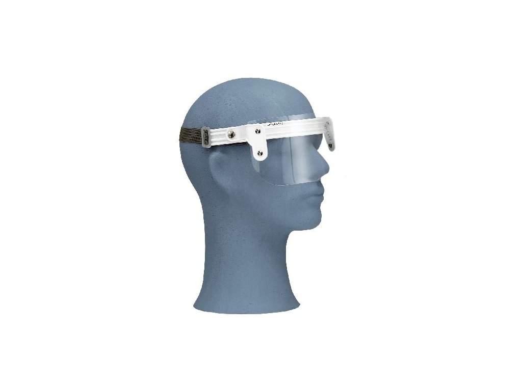 Ochranný štít s náhlavným nosičom, určený na ochranu očí a tváre proti nárazu pomaly letiacich častíc s dopadovou energiou max. 0,56 J, súčasne chráni dýchacie ústrojenstvo pred priamym vdýchnutím mechanických častíc, umožňuje súčasné použitie dioptrických okuliarov, nechráni proti postreku kvapalinou. Materiál: PMMA (plexisklo) hrúbka 2 mm.