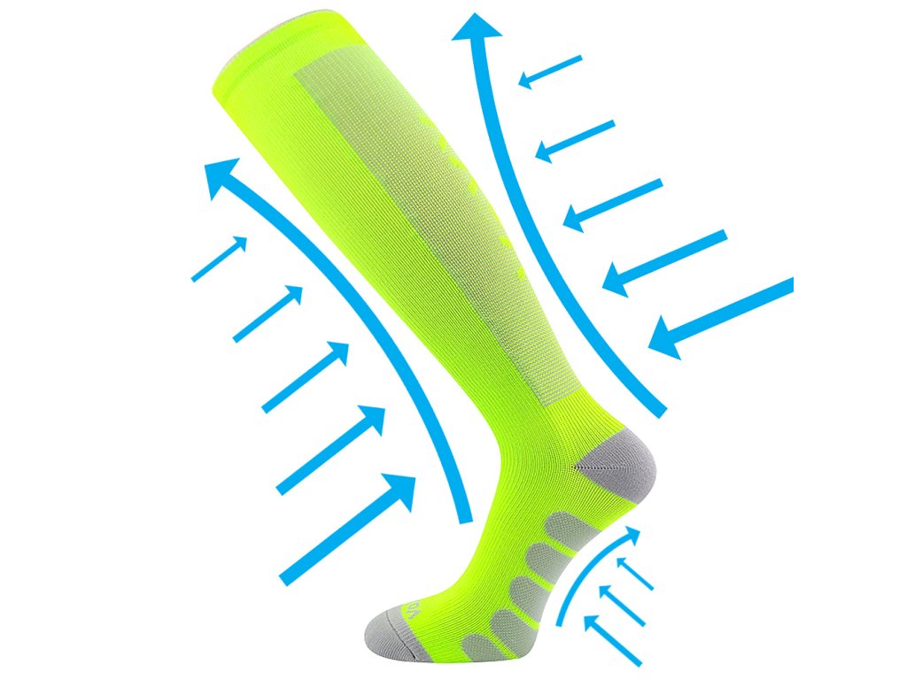 - kompresívne podkolienky so špeciálnou konštrukciou pre Vaše zdravie. Pozitívne pôsobí na krvný obeh vďaka stupňovitému masážnemu tlaku. Sú vhodné najmä tam, kde dochádza k prílišnému zaťaženiu dolných končatín. Pri záťažovom športe, rýchla regenerácia svalov, zvýšenie prietoku krvi, väčšie okysličenie svalov. Vhodné pre dlhodobé státie, alebo sedenie v zamestnaní, dlhodobé cestovanie v rôznych dopravných prostriedkoch. Prevencia proti kŕčovým žilám - vhodné pre budúce mamičky a najmä vhodné pre použitie v zdravotníctve. ">Materiálové zloženie: polyamid - 90%, elastan - 10%