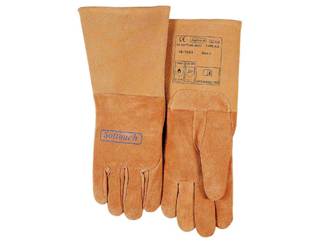 - päťprsté rukavice 35 cm dlhé so šikmým palcom - tvar šikmého palca umožňuje prirodzený pohyb palca a prstov zvárača