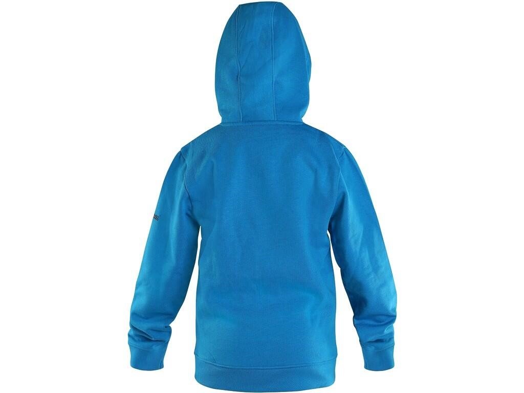 Detská mikina s klokaním vreckom, kapucňa napevno s možnosťou stiahnutia na šnúrku, pás a rukávy ukončené pružnou manžetou z rebrovaného úpletu, reflexné šnúrky, vnútorná strana jemne počesaná. Finálna silikónová úprava materiálu, ktorá zaisťuje vyššiu mäkkosť a odolnosť voči zašpineniu. Vhodné na potlač a výšivku.