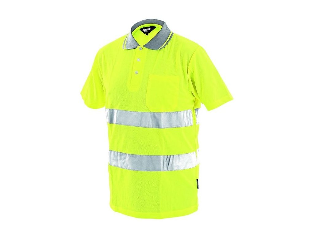 Výstražné tričko s golierom, reflexné pruhy, s Wicking Finish úpravou pre rýchle a rovnomerné schnutie.