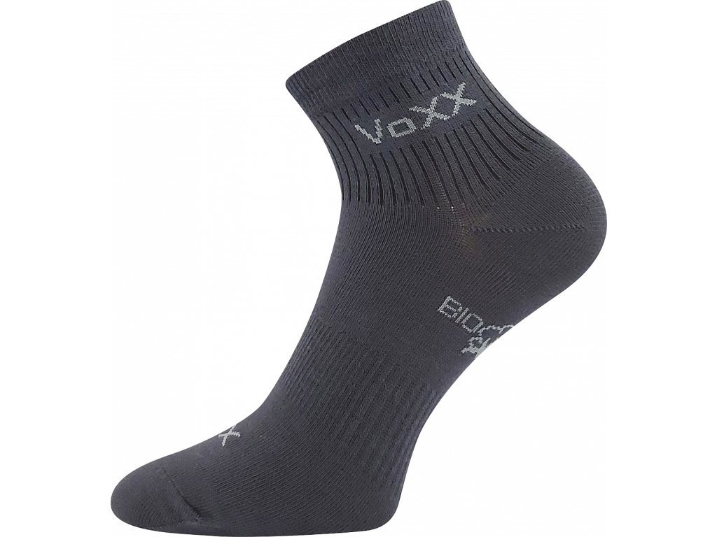 Športové slabé ponožky VoXX® BOBY sú kratšie ponožky s vysokým podielom BIO bavlny. Biobavlna je čisto prírodný materiál, ktorý neobsahuje syntetické substancie, je priedušnejší a jemnejší na dotyk. Ponožky výborne sajú pot, sú príjemné na nosenie a vďaka elastickému pruhu na priehlavku sa nepretáčajú a držia na svojom mieste. Priedušné zóny na priehlavku skvele odvádzajú vlhkosť, voľný lem je pružný, jemný a nesťahujúci. Slabé ponožky VoXX® môžete nosiť po celý deň, sú v teplotnej triede A od +10 °C do +35 °C.